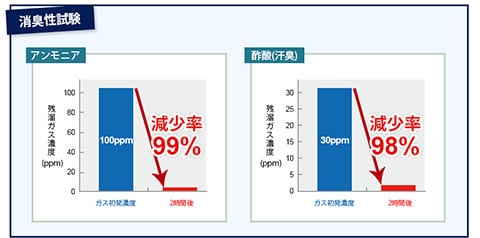 アンモニアに対する消臭性が特に強く、天日干しにより繰返し使用が可能です。