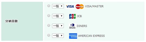 クレジットカード情報を記入後、お支払い回数(一括、分割、リボ払い)を指定して決済。