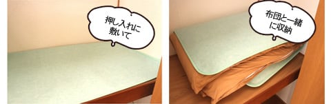 収納の際は、布団やマットレスを除湿シートを一緒に畳んで押入れにいれれば、押し入れの中でも効果を発揮します。