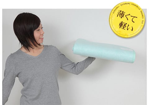 他社製品の場合、シングルサイズで平均1.7㎏ございますが、約1.1㎏と軽量化に成功しました。